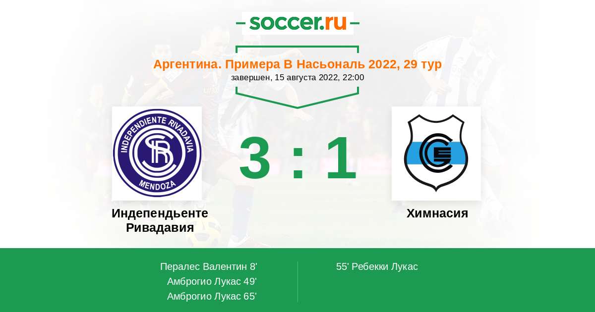Протокол матча Индепендьенте Ривадавия против Химнасия