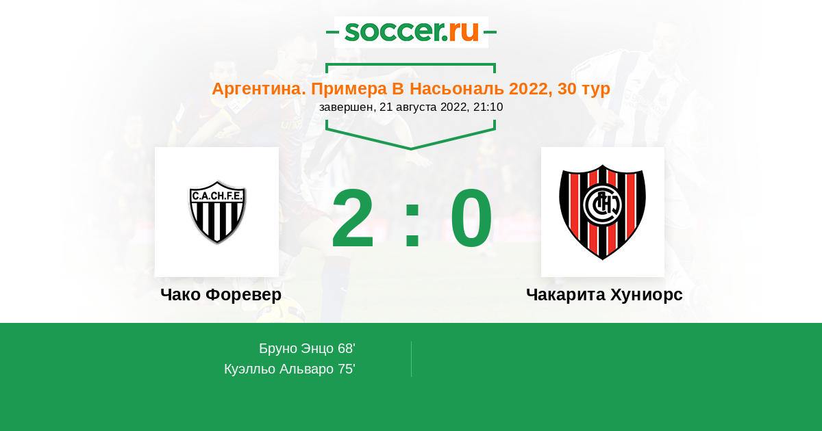 Протокол матча Чако Форевер против Чакарита Хуниорс