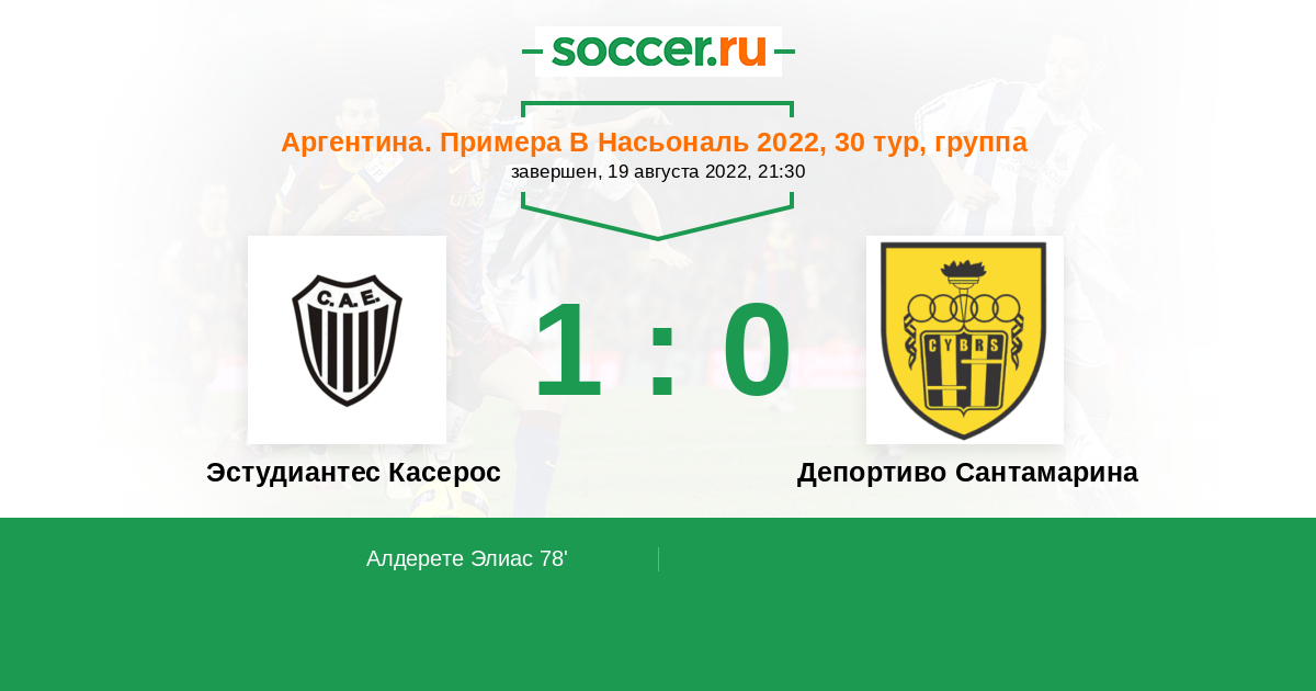 Протокол матча Эстудиантес Касерос против Депортиво Сантамарина