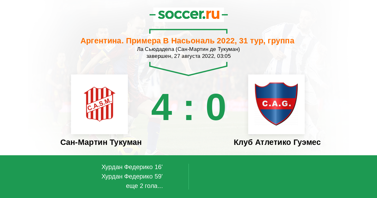 Протокол матча Сан-Мартин Тукуман против Атлетико Гуэмес