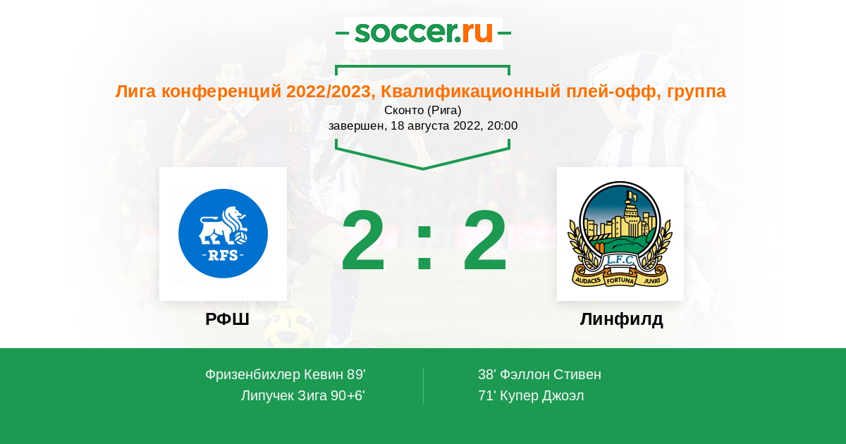 Протокол матча РФШ против Линфилд