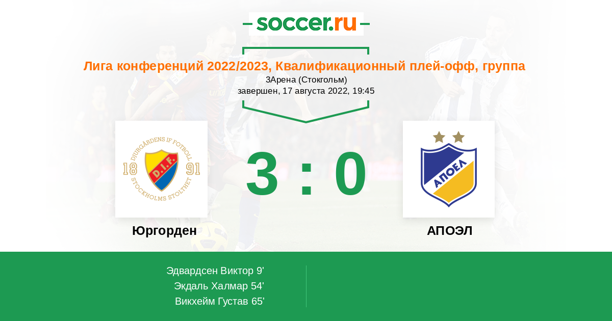 В этом матче "Юргорден" стартует в первом финальном матче квалификации лиги Конференции, где постарается продолжить свою отличную победную серию в этом сезоне. А в официальных матчах одержали десять побед и только сыграл одну нулевую ничью. АПОЭЛ в четырех матчах Лиги конференции сыграл на ноль благодаря хорошей и слаженной игре в защите. Гости в выездных матчах пытаются с первых минут сушить игру, поэтому возьму победу хозяев команду "Юргордена" в этой игре. Удачи