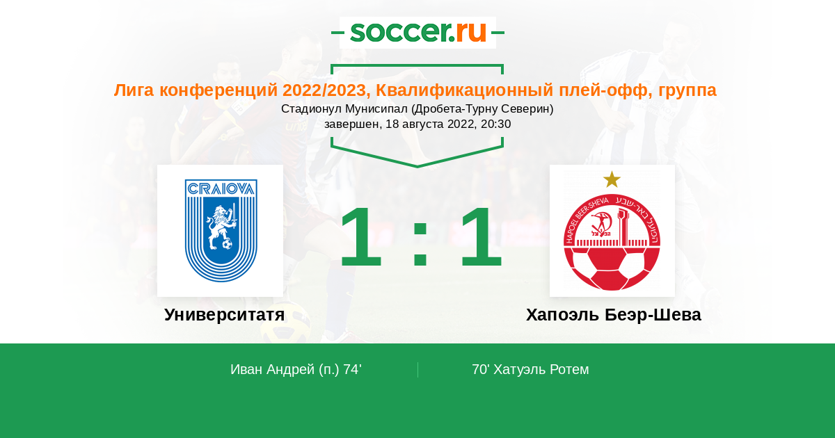 Протокол матча Университатя Крайова против Хапоэль Беэр-Шева