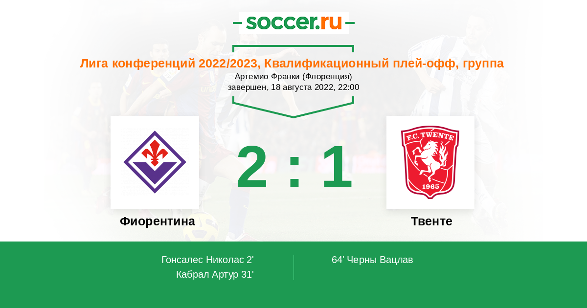 "Твенте" в прошлом сезоне отлично выступил в Эредивизи, заняв четвертое место, которое позволило попасть в третий квалификационный раунд Лиги конференций. Этот раунд "Тюккерс" прошли успешно, уверенно в каждой из двух игр переиграв "Чукарички" (3:1 и 4:1). Перед игрой с "Фиорентиной" команда может похвастаться хорошей игрой в обороне, надежным голкипером Ларсом Уннершталлем ― поэтому шансы на успех есть даже в первой выездной игре.