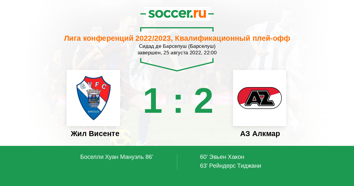 Протокол матча Жил Висенте против АЗ Алкмар