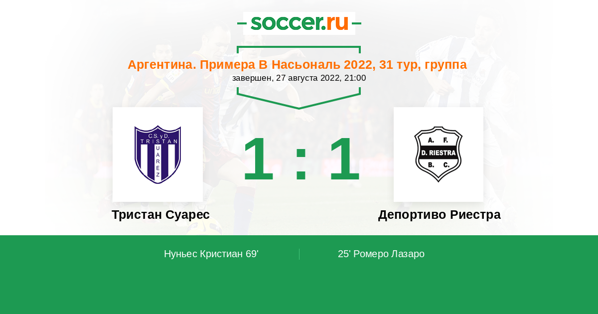 Протокол матча Тристан Суарес против Депортиво Риестра