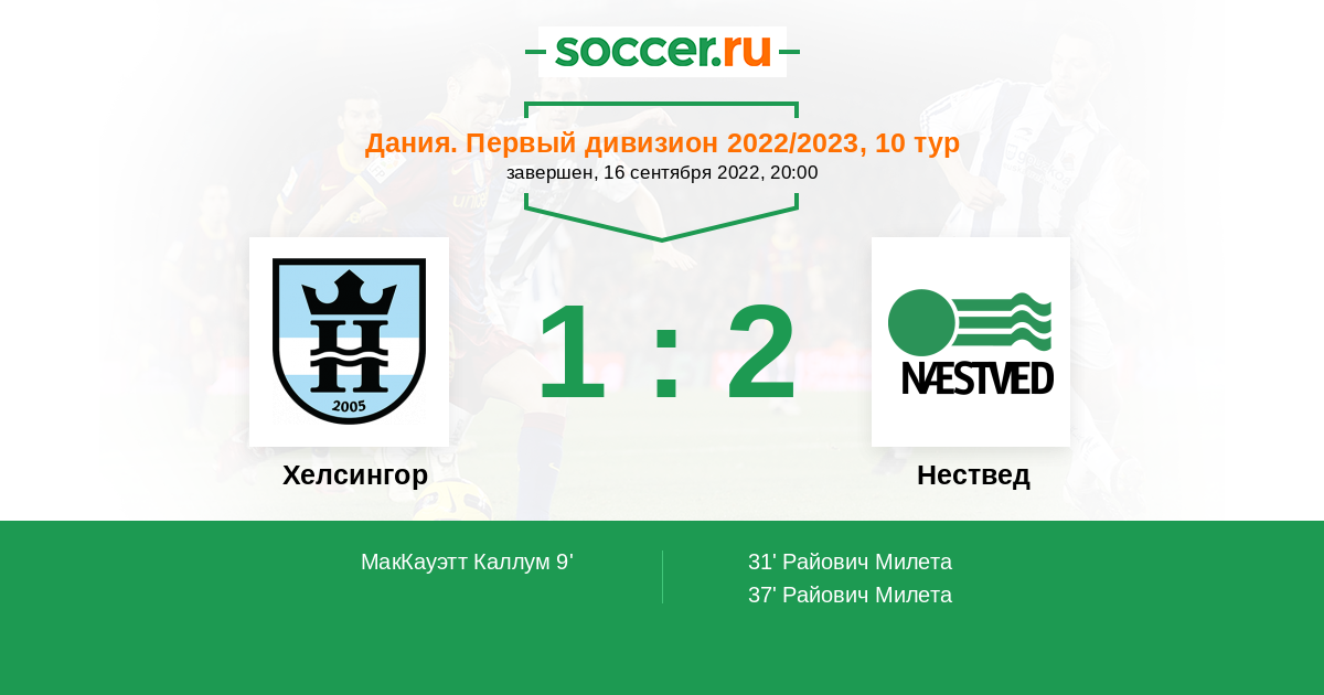 Протокол матча Хелсингор против Нествед