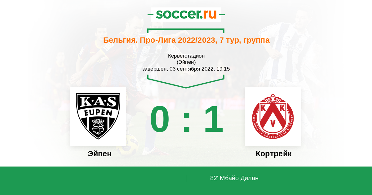 Протокол матча Эйпен против Кортрейк
