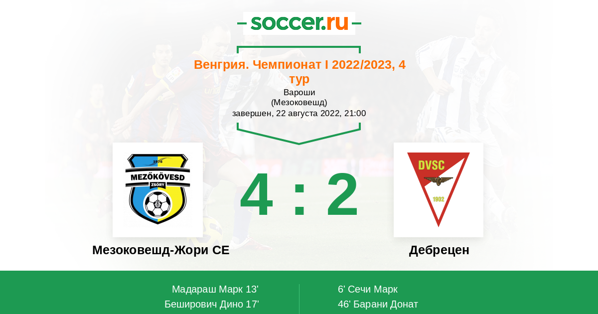 Протокол матча Мезоковешд-Жори СЕ против Дебрецен