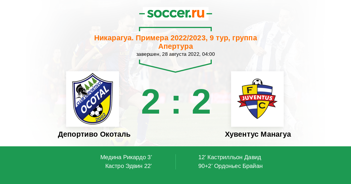 Протокол матча Депортиво Окоталь против Хувентус Манагуа