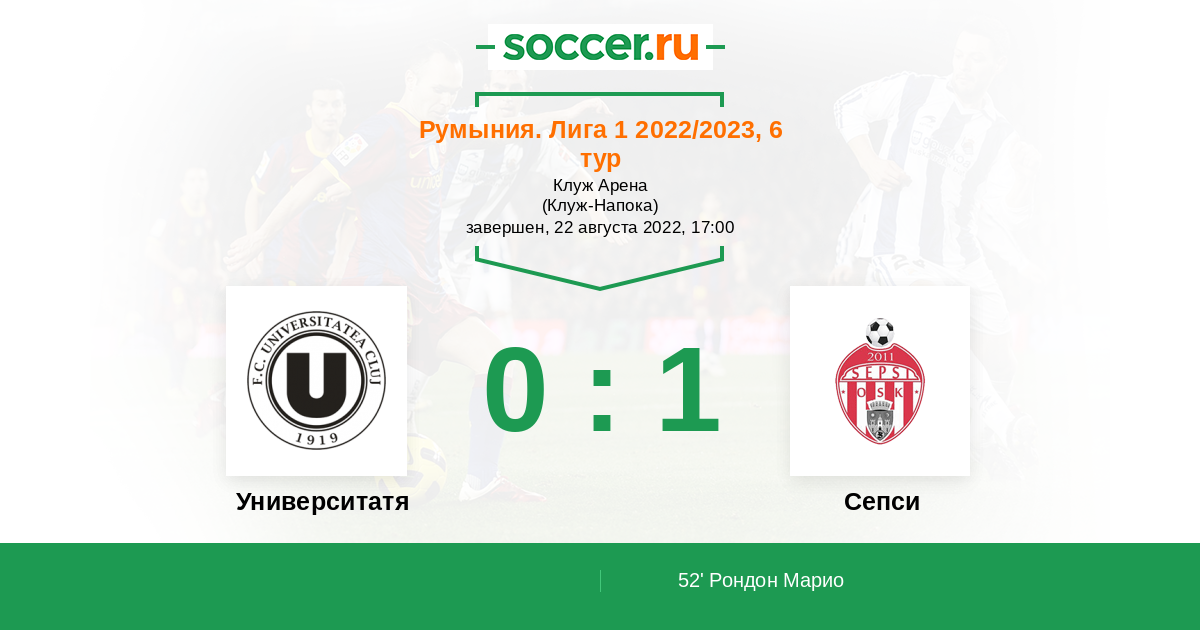 Протокол матча Университатя Клуж против Сепси