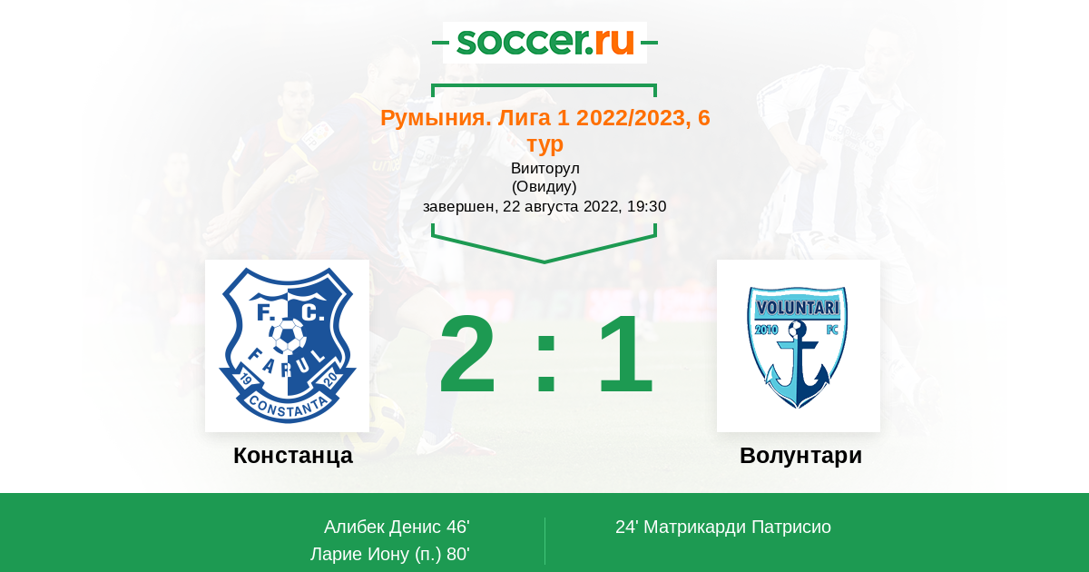 Протокол матча Фарул против Волунтари