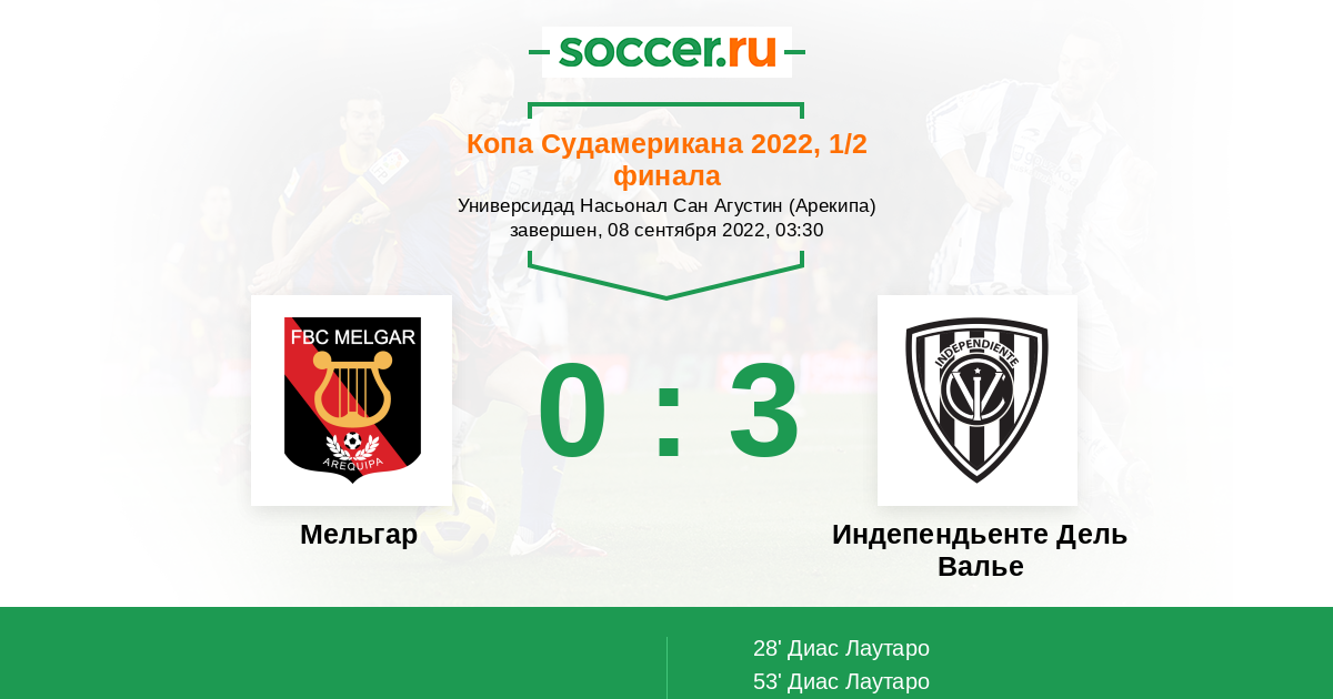 Протокол матча Мельгар против Индепендьенте Дель Валье