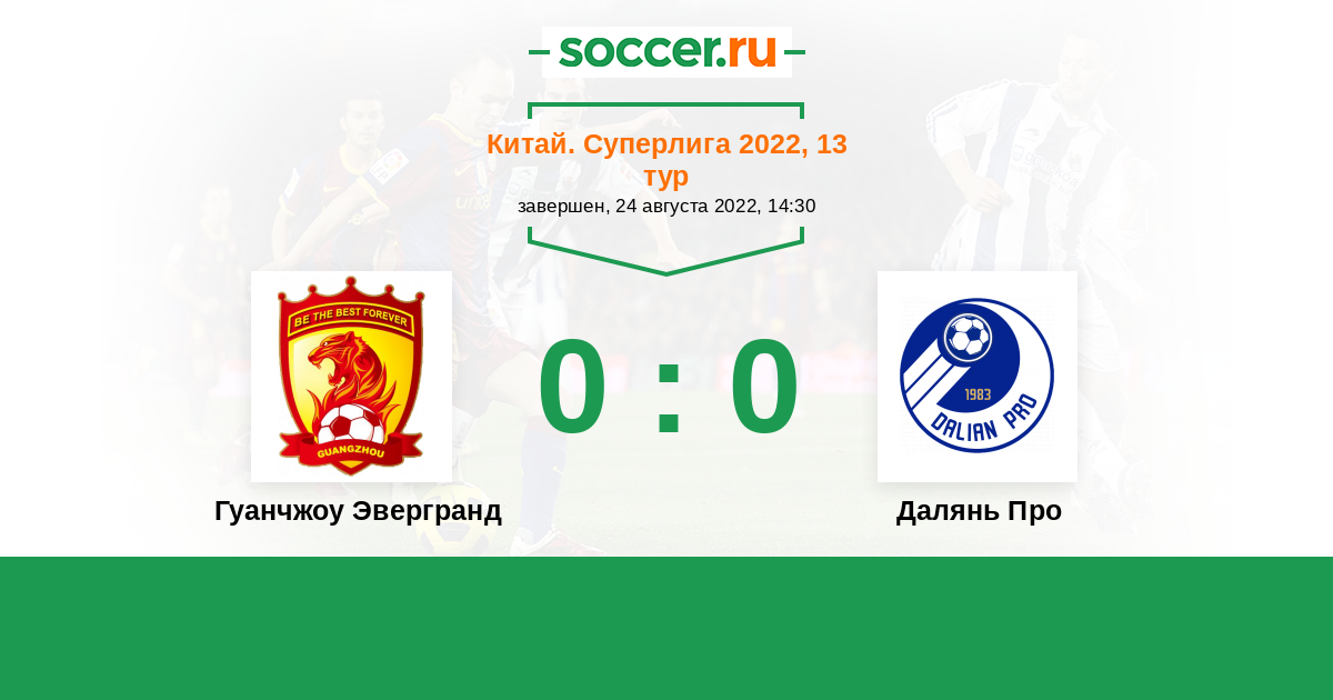 Протокол матча Гуанчжоу Эвергранд против Далянь Про