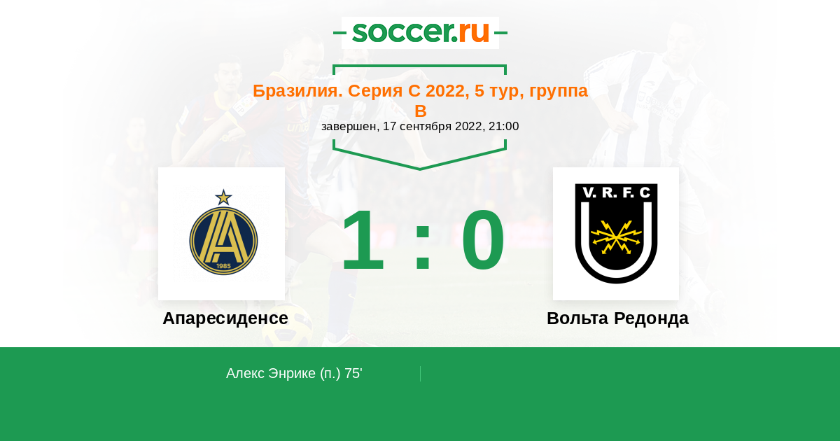 Протокол матча Апаресиденсе против Вольта Редонда
