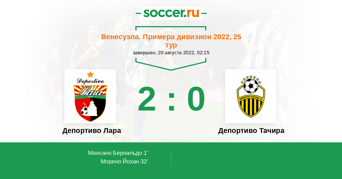 Протокол матча Депортиво Лара против Депортиво Тачира