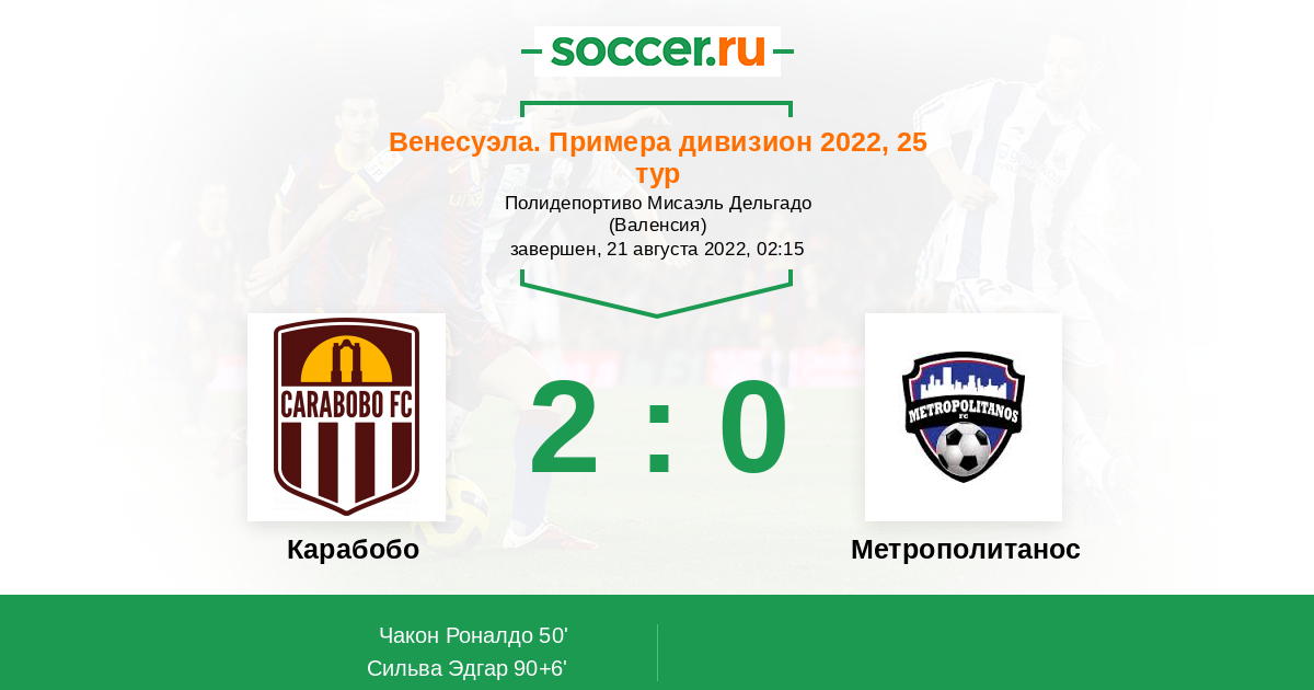 Протокол матча Карабобо против Метрополитанос