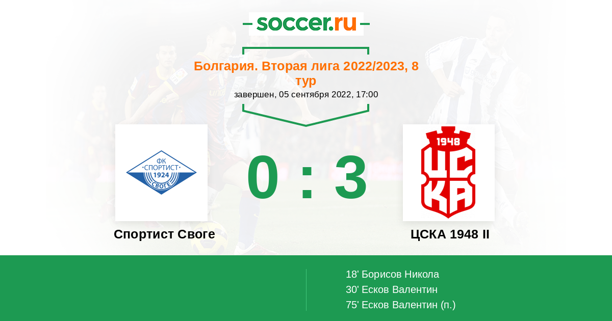 Протокол матча Спортист Своге против ЦСКА 1948 II