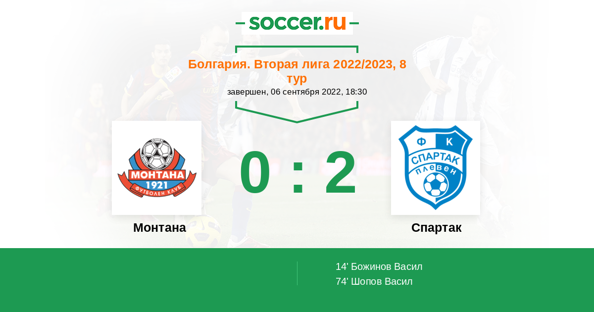 Протокол матча Монтана против Спартак