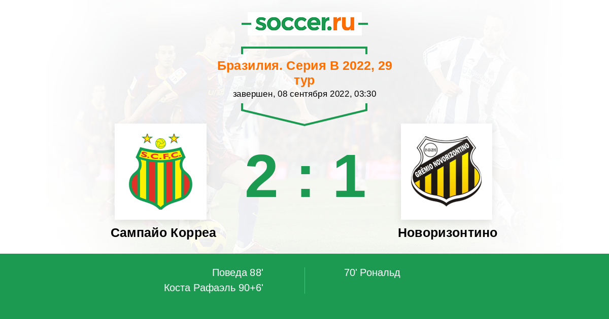 Протокол матча Сампайо Корреа против Новоризонтино