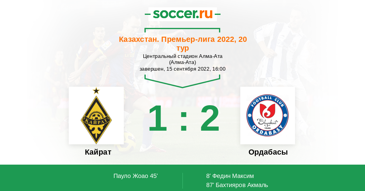 Протокол матча Кайрат против Ордабасы