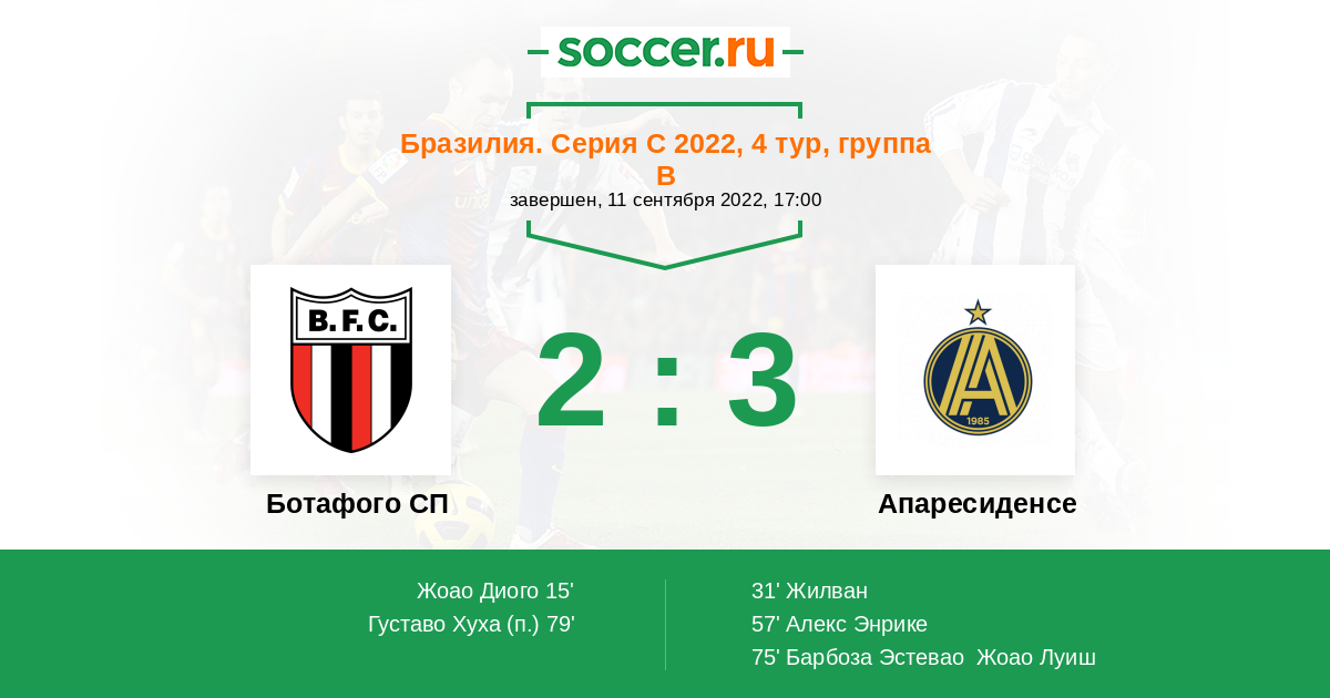 Протокол матча Ботафого СП против Апаресиденсе