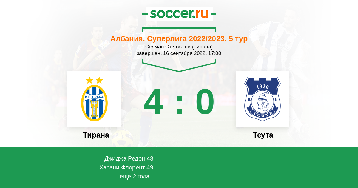Протокол матча Тирана против Теута
