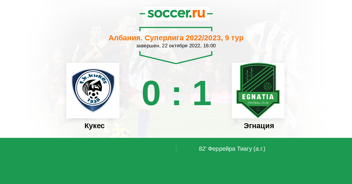 82' (0:1) Автогол Феррейра Тиагу