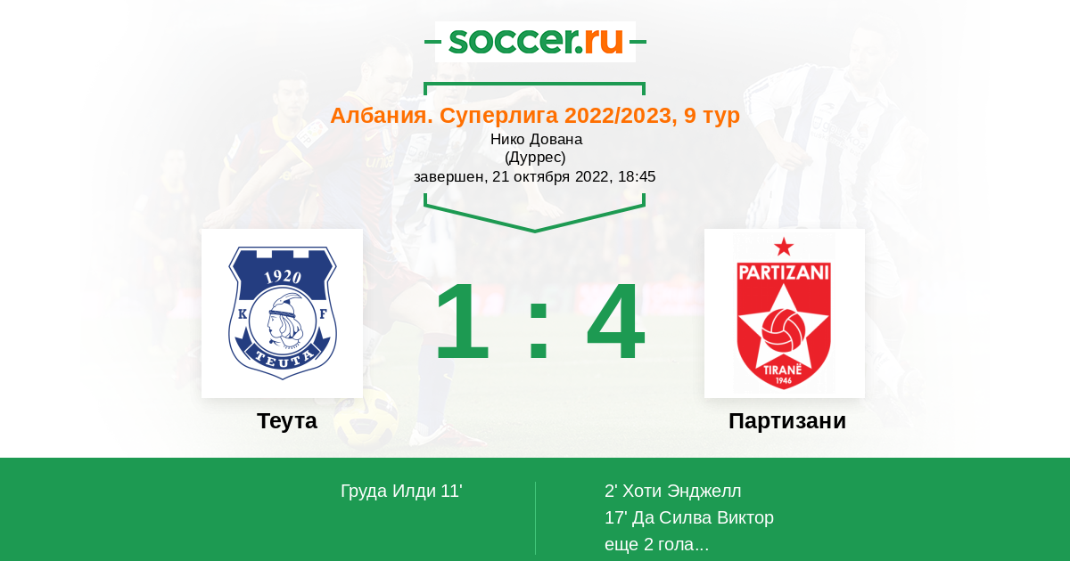 Протокол матча Теута против Партизани