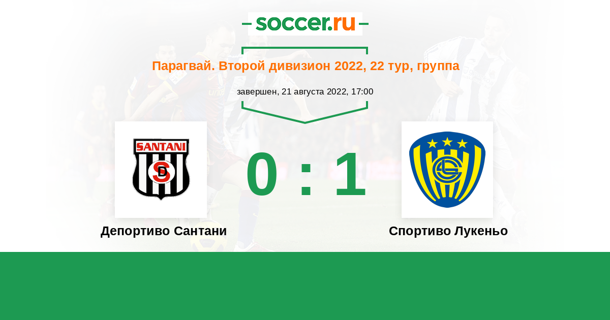 Парагвай. Второй дивизион 14.05.2022 Спортиво Лукеньо Логотип футбольный клуб Спортиво Лукеньо 2:2 Логотип футбольный клуб Депортиво Сантани (Сан Эстанислао) Депортиво Сантани