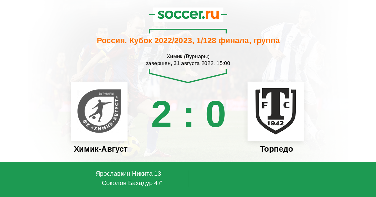 Протокол матча Химик-Август против Торпедо