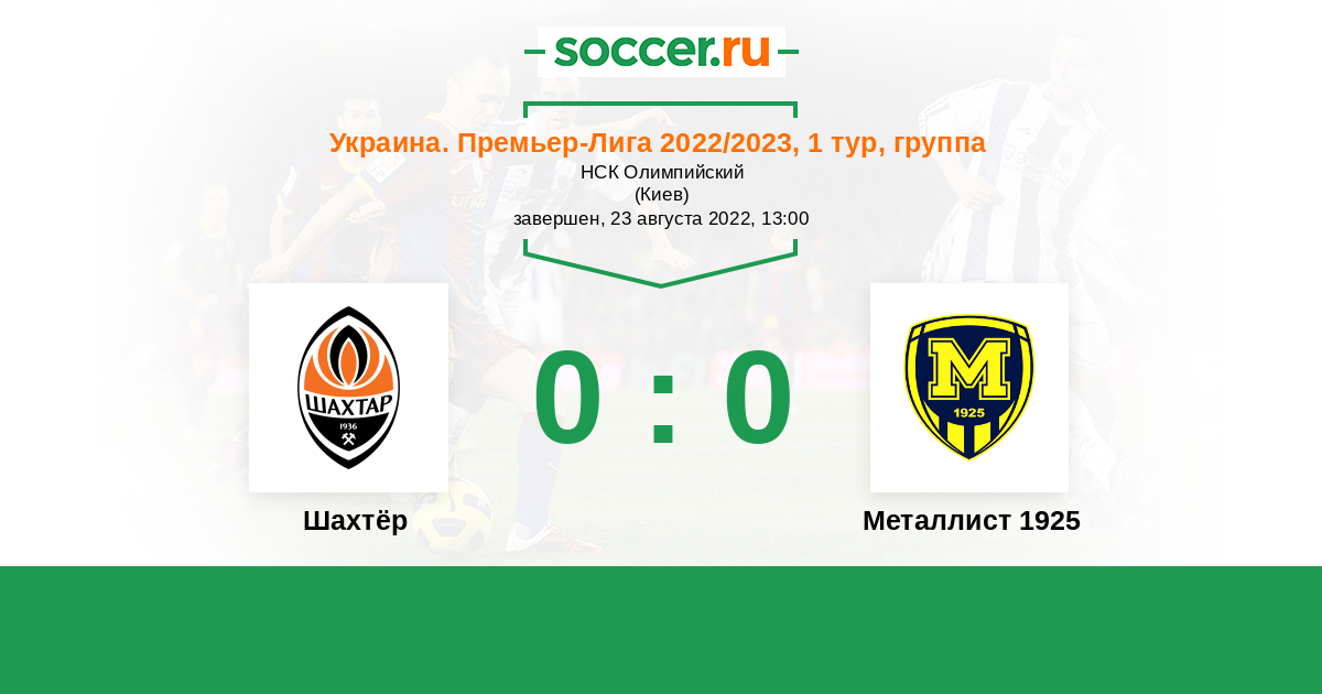 Протокол матча Шахтёр против Металлист 1925