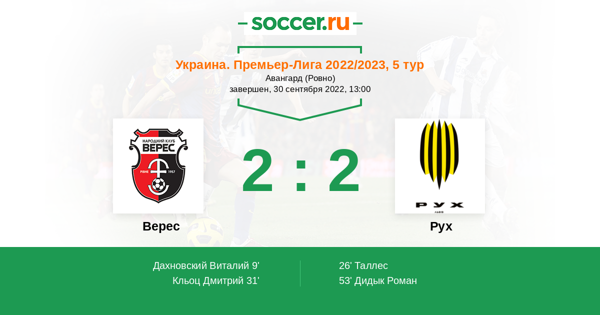 Протокол матча Верес против Рух