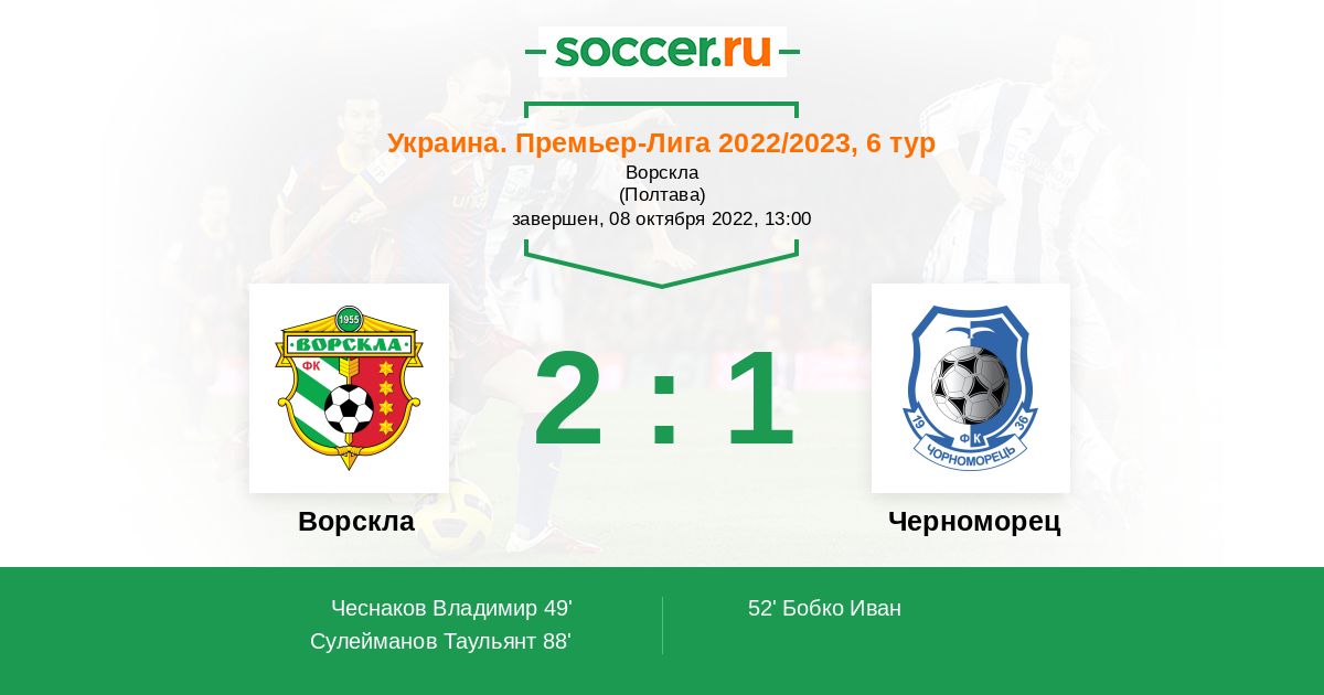 Протокол матча Ворскла против Черноморец