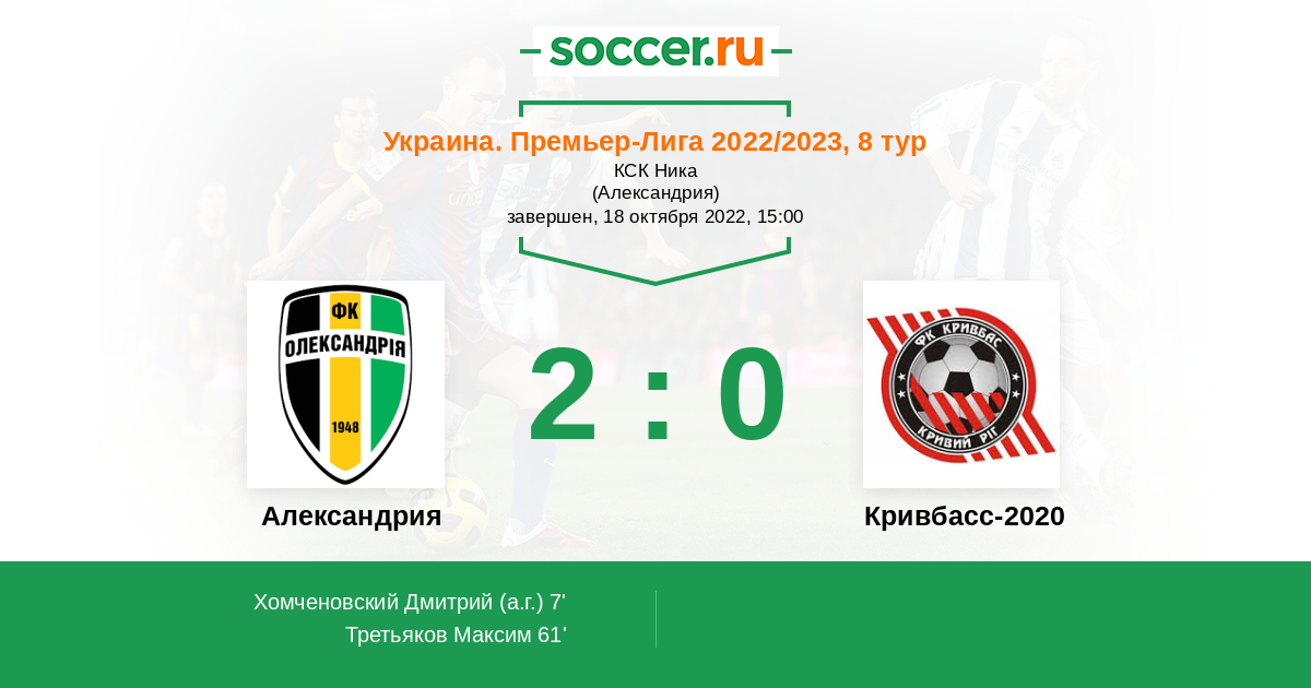 Протокол матча Александрия против Кривбасс-2020