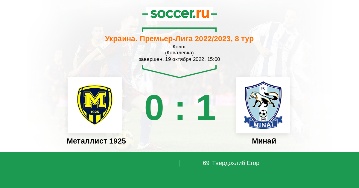 Протокол матча Металлист 1925 против Минай