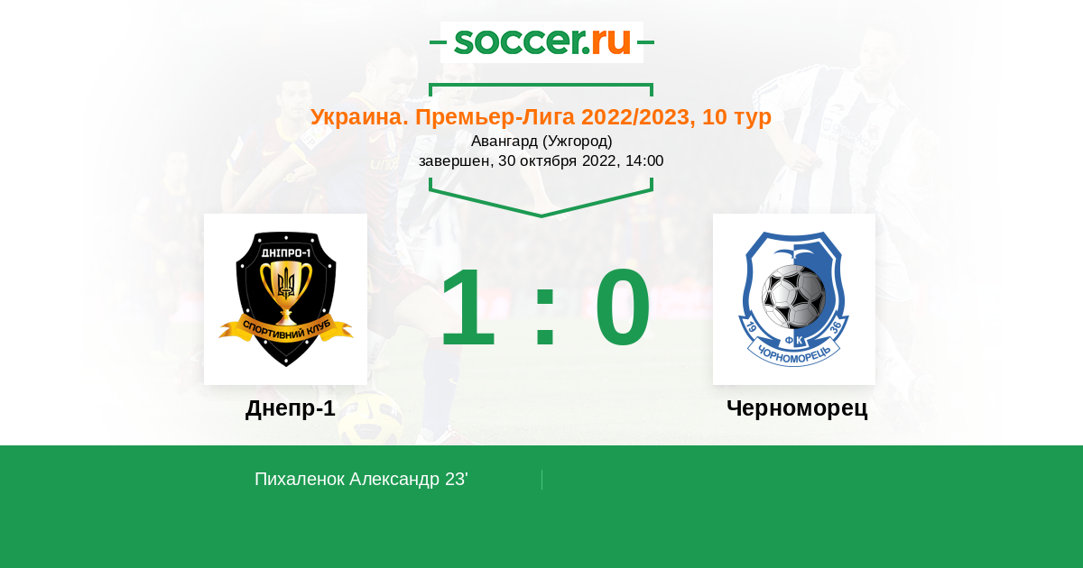 Протокол матча Днепр-1 против Черноморец