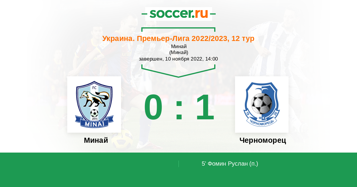 Протокол матча Минай против Черноморец