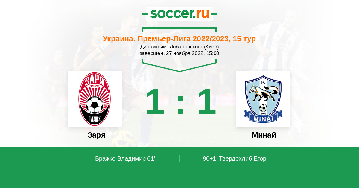 Протокол матча Заря против Минай