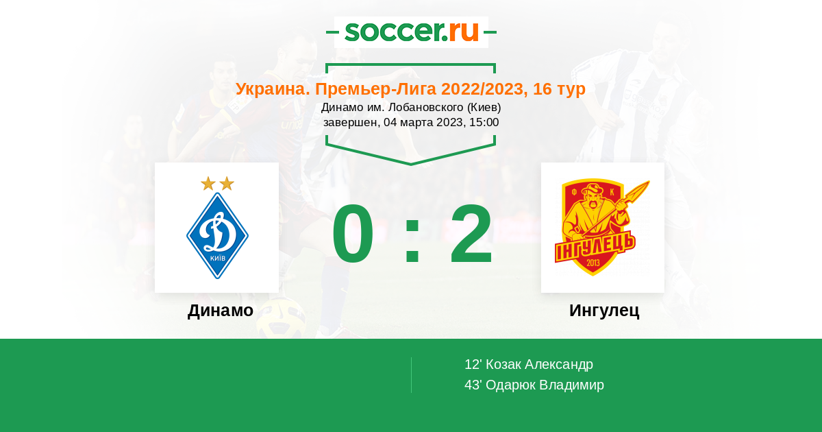 Протокол матча Динамо против Ингулец