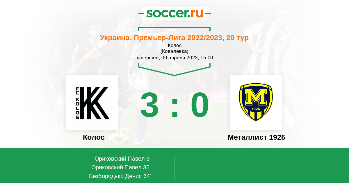 3' (1:0) Ориковский Павел (10) (Мякушко Сергей (47))