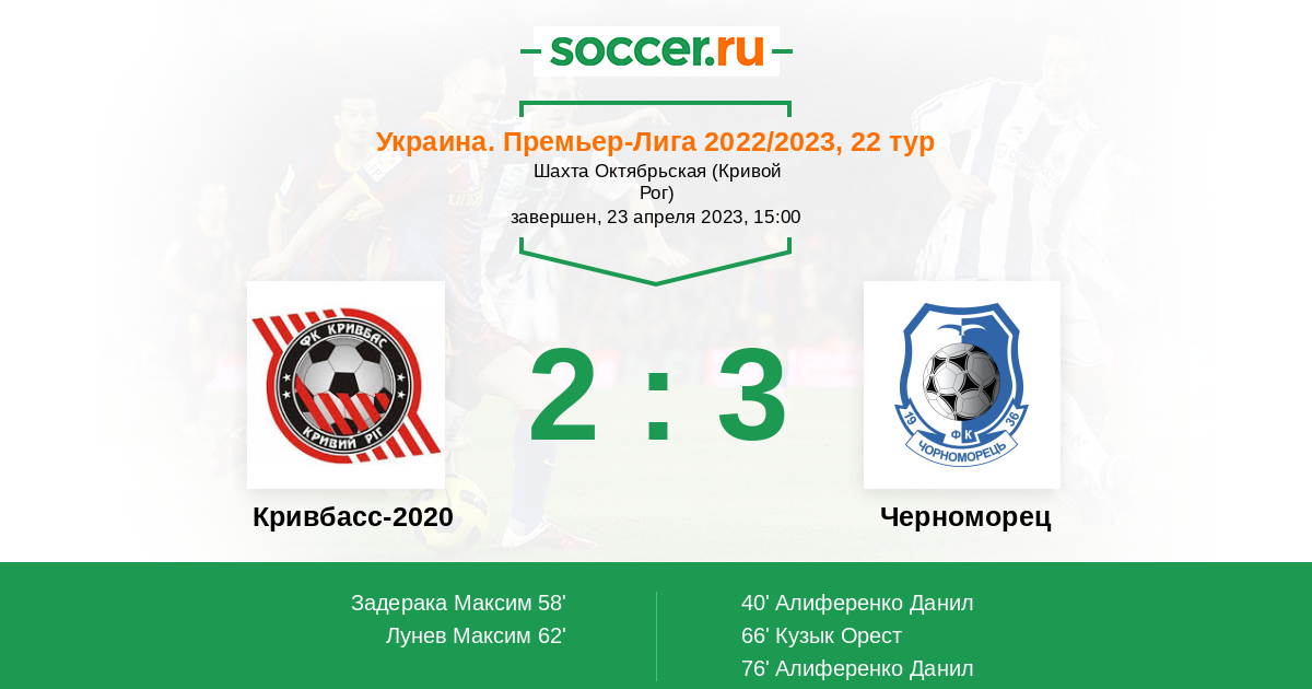 40' (0:1) Алиференко Данил (19) (Кузык Орест (7))