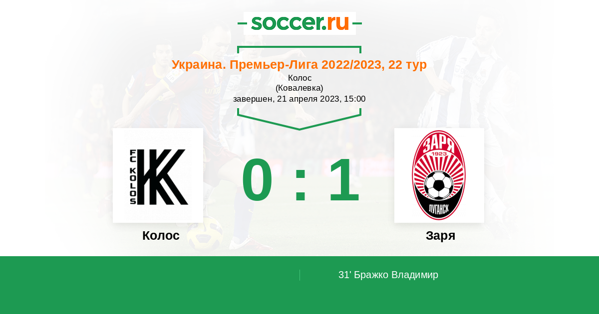 Я думаю что в этом противостоянии более чем явным фаворитом на победу является команда гостей Заря , которая борется за попадание в зону лиги чемпионов . Команда хозяев поля Колос обязательно даст бой команде гостей, но Заря выйдет победителем.