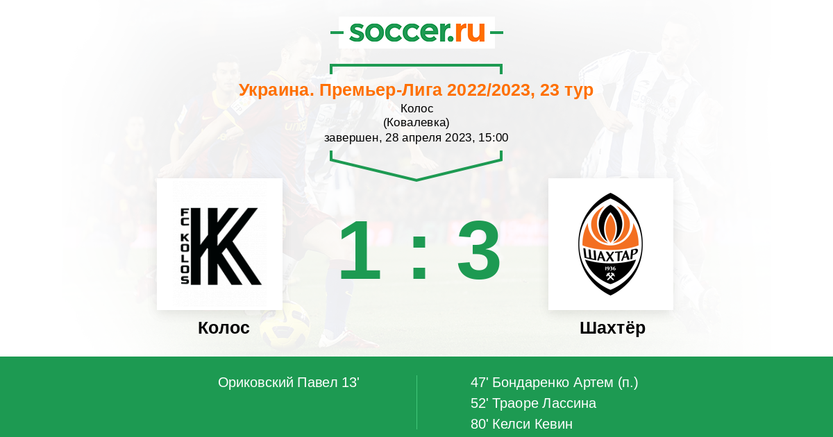 В предстоящем матче 23 - го тура украинской Примьер - Лиги между командами Колос и Шахтёр Донецк, фаворитом на победу является команда гостей Шахтёр Донецк, так как они играют лучше.