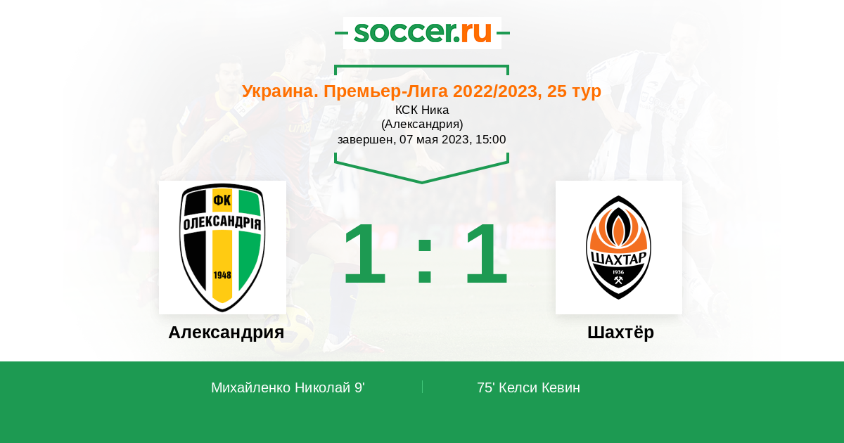 Протокол матча Александрия против Шахтёр
