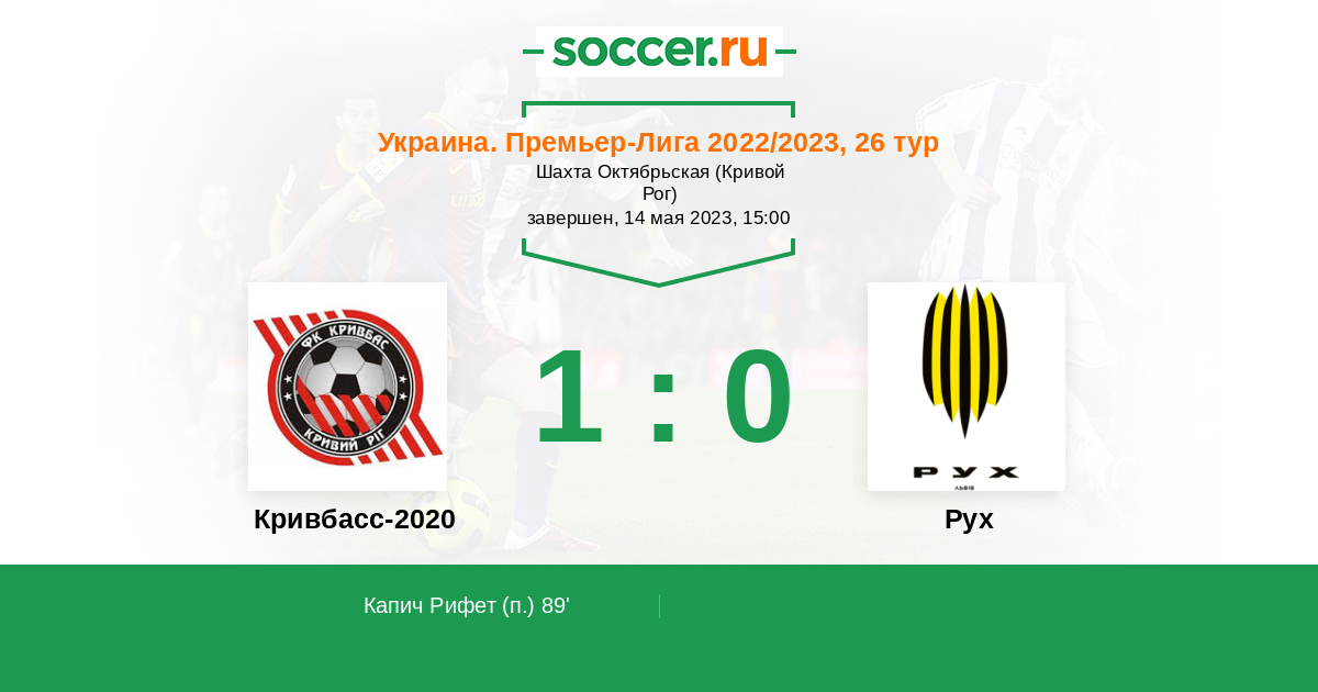 Протокол матча Кривбасс-2020 против Рух