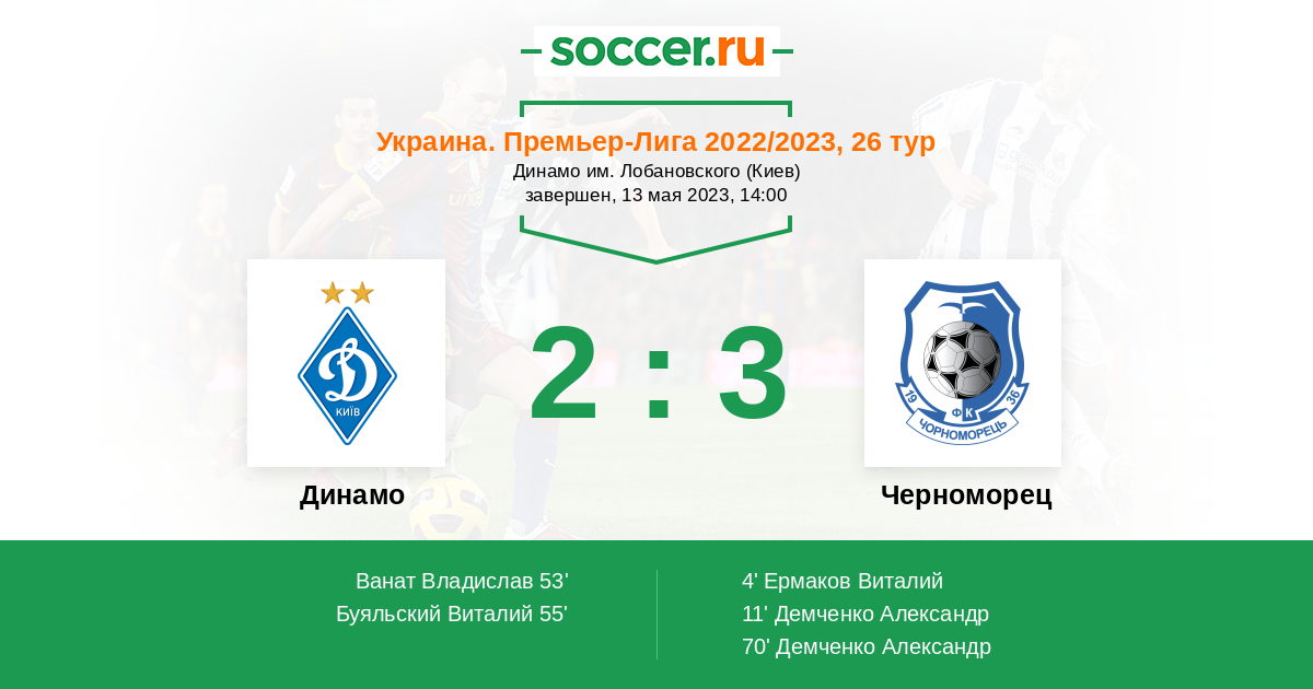 Протокол матча Динамо против Черноморец