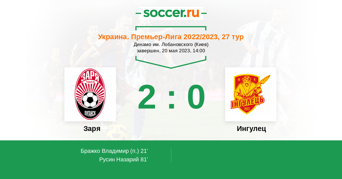 Заря - Ингулец ! Хозяева в прекрасной форме , у них внушительная серия побед , можно попытаться догнать в турнирной таблице Днепр. А для этого надо побеждать и побеждать желательно уверенно.