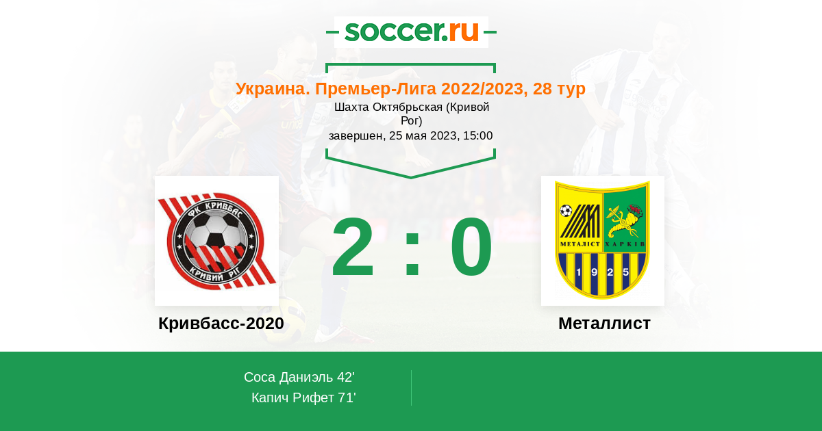 Протокол матча Кривбасс-2020 против Металлист