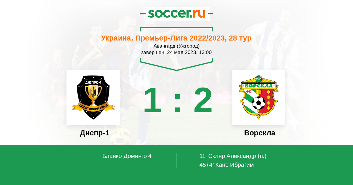 Протокол матча Днепр-1 против Ворскла
